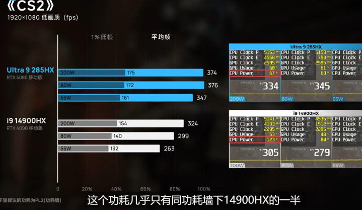 RTX5060独显搭配酷睿Ultra处理器的好处有很多,因为用上了英特尔最新架构和制程工艺,酷睿Ultra能效比提升显著,就拿大V实测的游戏来说,在CS2当中,酷睿Ultra仅需80W的功耗,就能发挥出比前代140W以上还要强的性能,且功耗越低,效率优势越明显。这样在玩游戏时,可以确保电脑把更多功耗分配给显卡,同时不损失性能,而在不需要独显介入的日常办公环境下,酷睿Ultra处理器还能带来更低的噪音和温度,整体使用体验更好。