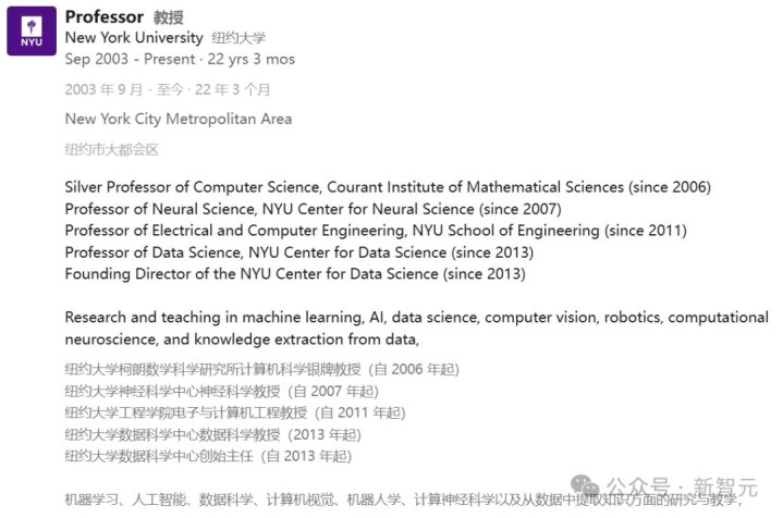 2003年,LeCun离开工业界,前往纽约大学库朗数学科学研究所担任计算机科学教授。