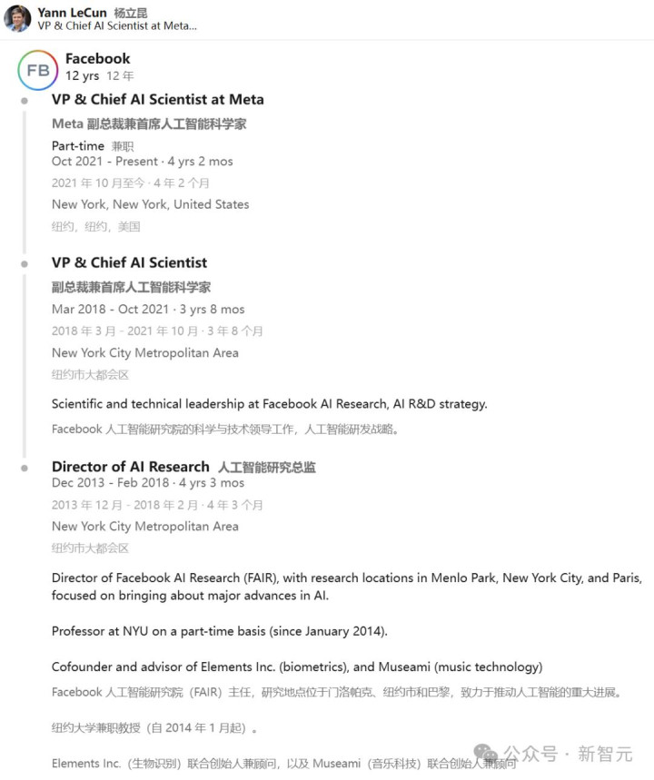 2013年12月,他加入Facebook并创建了FAIR(Facebook AI Research),同时,他也还兼顾在纽约大学的工作。