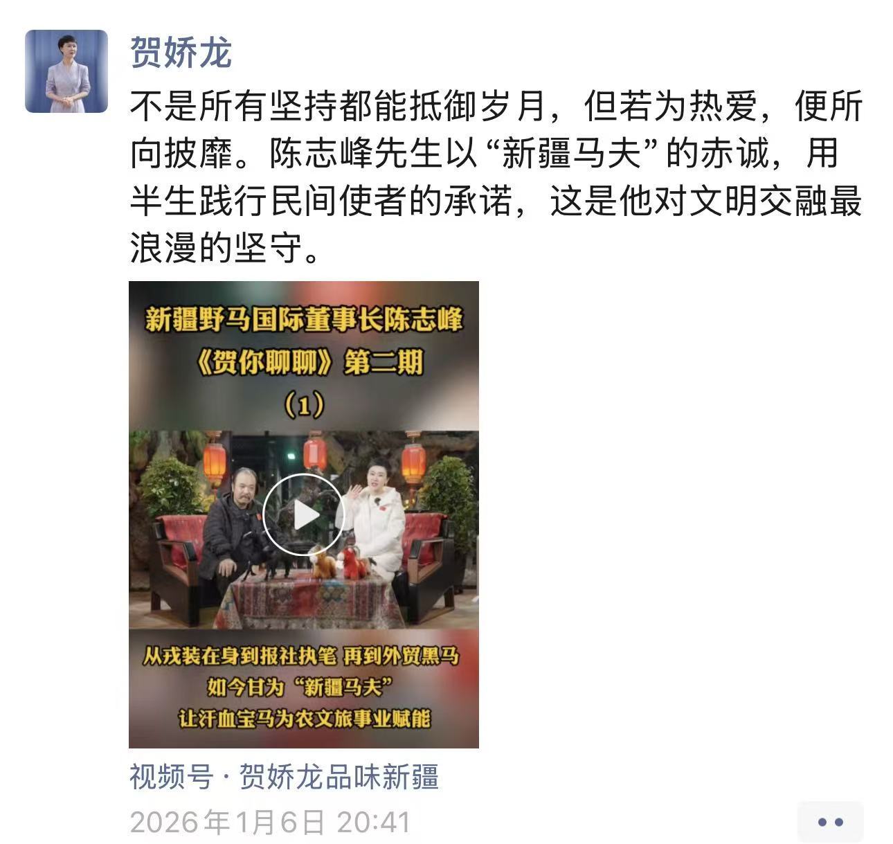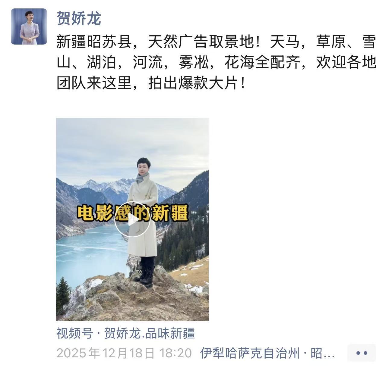 贺娇龙多次在朋友圈里宣传新疆